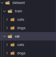 사전에 dataset폴더에 train과 val을 구분하여 데이터를 만들어준다.