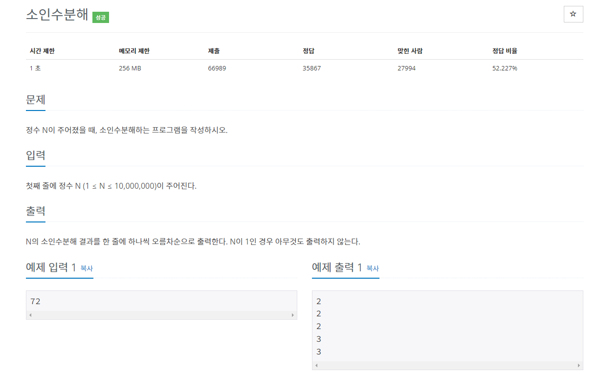 정수 N이 주어졌을 때, 소인수분해하는 프로그램을 작성하시오.