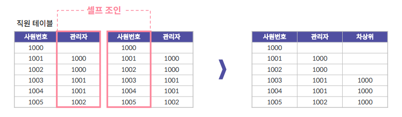 FROM 직원 ALPHA, 직원 BETA WHERE ALPHA.관리자 = BETA.사원번호;