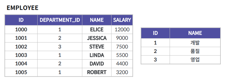 DEPARTMENT_ID를 그룹으로 하여, 그중 가장 높은 SALARY 값들을 반환하게 되고, 메인쿼리 상에는 EMPLOYEE 테이블에서 이 값이 일치하는 직원을 출력
