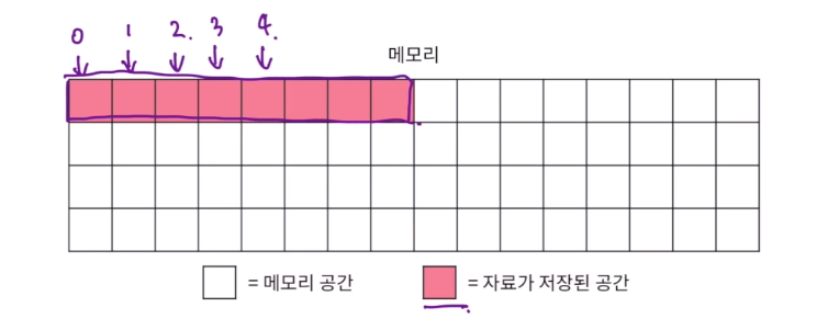 배열은 메모리 주소를 나타내게 되는데 0번째 인덱스에서 다음 인덱스까지 매우 빠르게 이동이 가능하다'