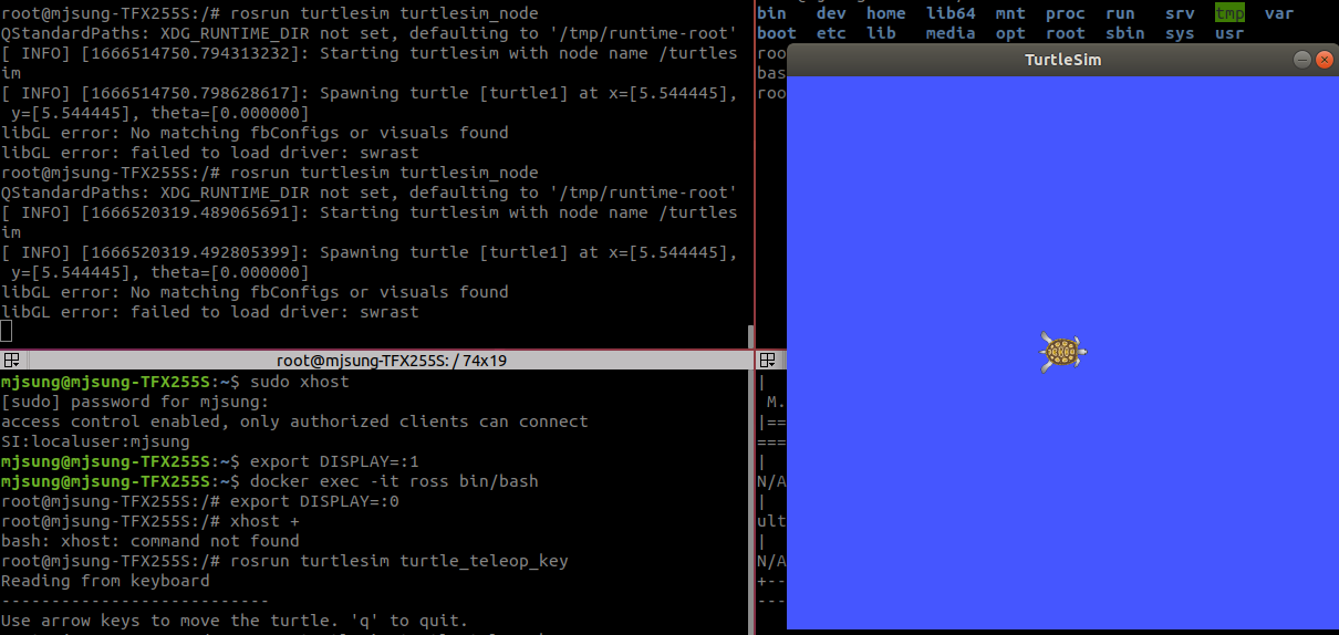 터틀심 노드를 실행할 수 없는 문제였다.