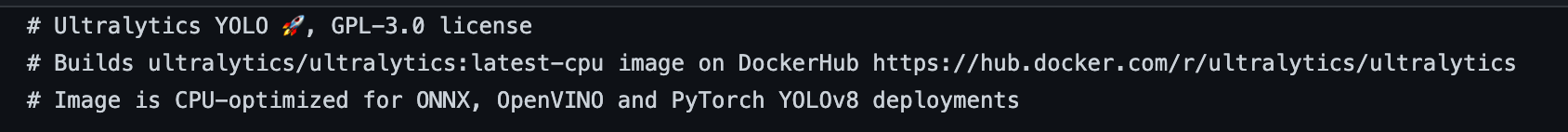 Dockerfile-cpu -> cpu만 사용할 경우, ONNX, OpenVINO, Pytorch는 지원이 되는 것 같다.