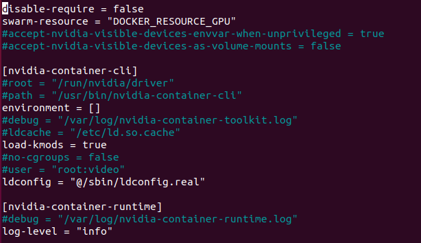 이후, /etc/nvidia-container-runtime/config.toml 파일에서 2번째줄 swarm-resource 주석을 제거하거나, 해당 구문을 추가한다.