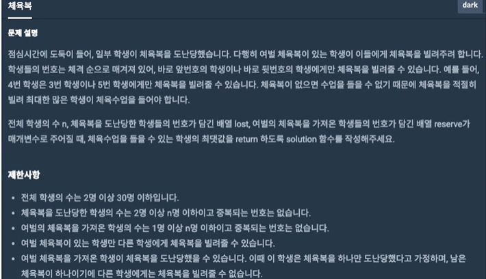 점심시간에 도둑이 들어, 일부 학생이 체육복을 도난당했습니다. 다행히 여벌 체육복이 있는 학생이 이들에게 체육복을 빌려주려 합니다. 학생들의 번호는 체격 순으로 매겨져 있어, 바로 앞번