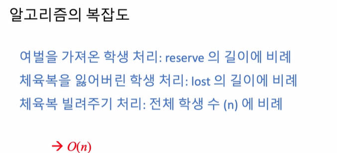 - 위의 알고리즘도 충분하지만, 만약에 천만명의 학생중, 20명의 학생만 여벌이 있다면, 천만명의 학생을 전부 확인해야 하므로 시간복잡도가 올라간다.
