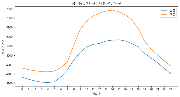 title = dong_name1 + ' 남녀 시간대별 평균인구'